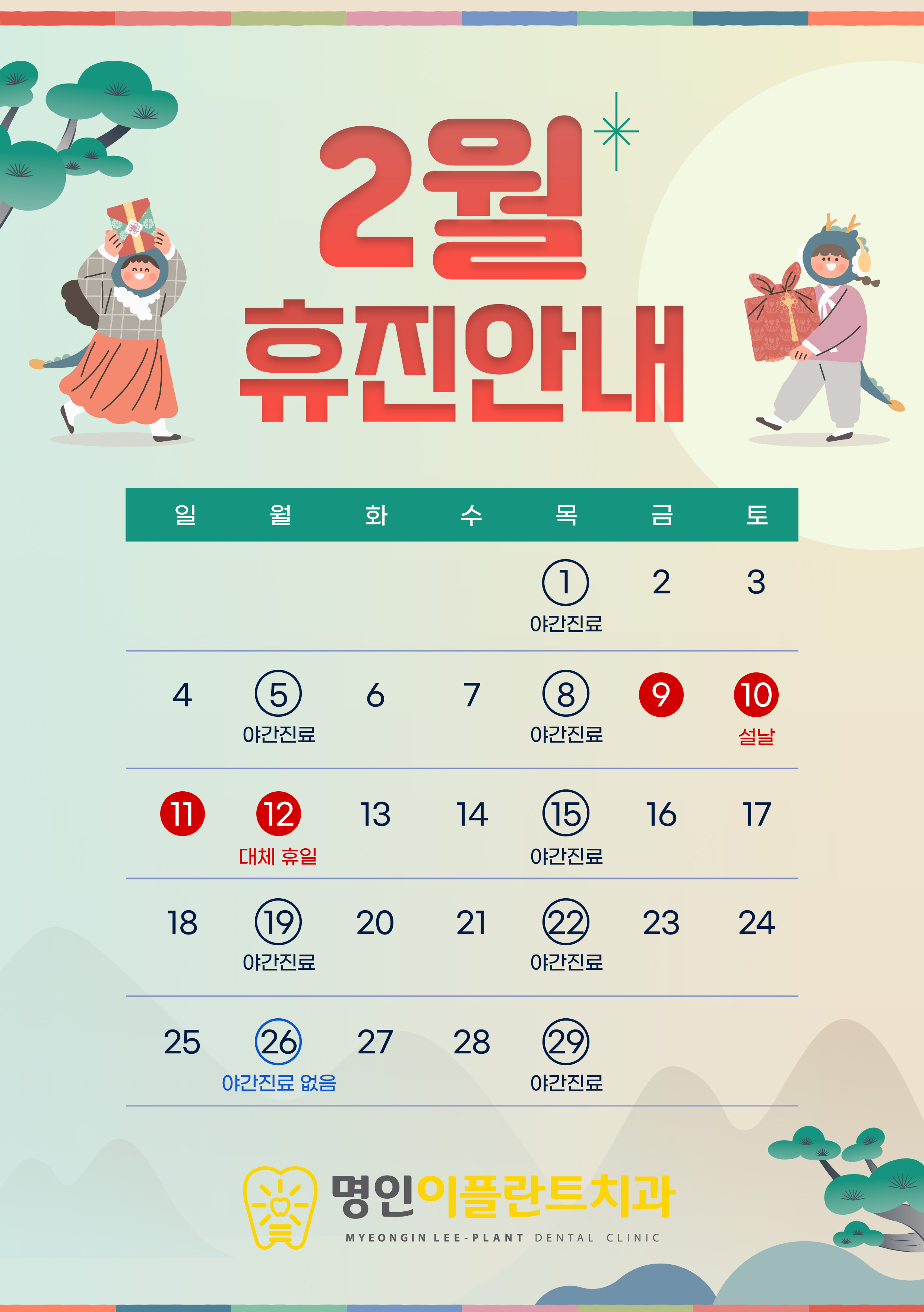 이플란트 치과 네트워크 2월 진료안내(부산명인점)