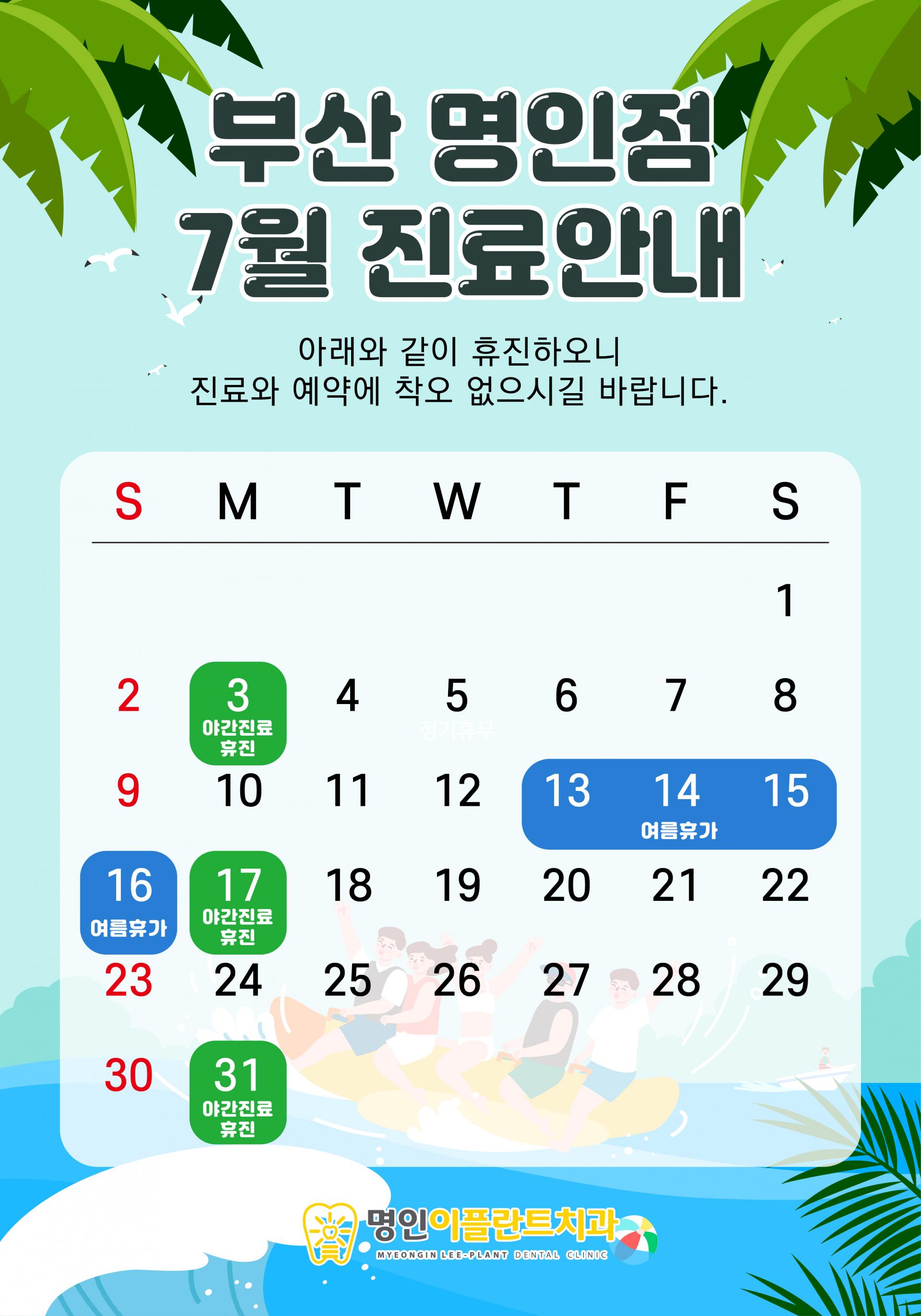 이플란트치과 네트워크 7월 진료안내(부산명인점)