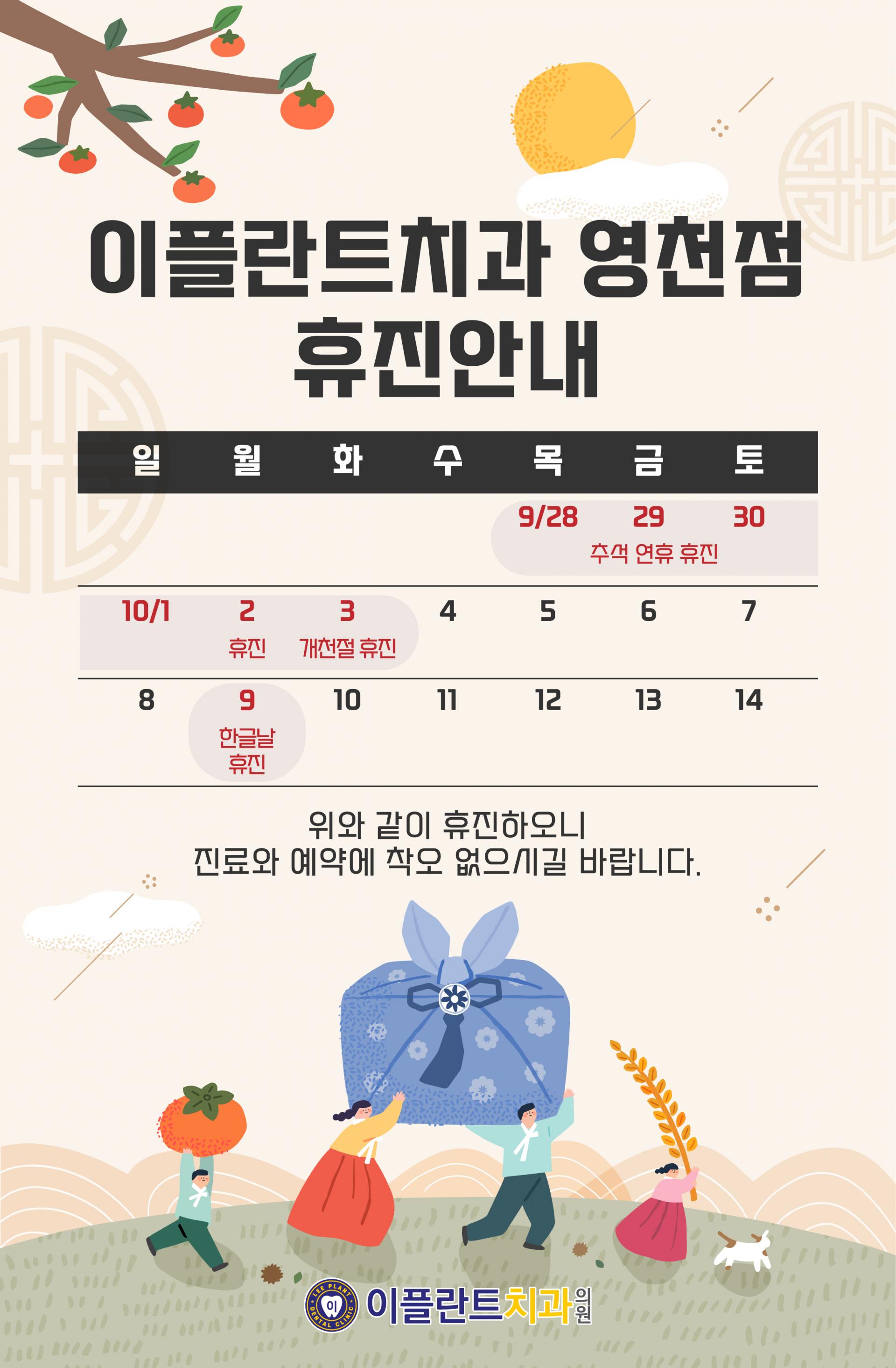 이플란트치과 네트워크 9월 10월 진료안내(영천점)